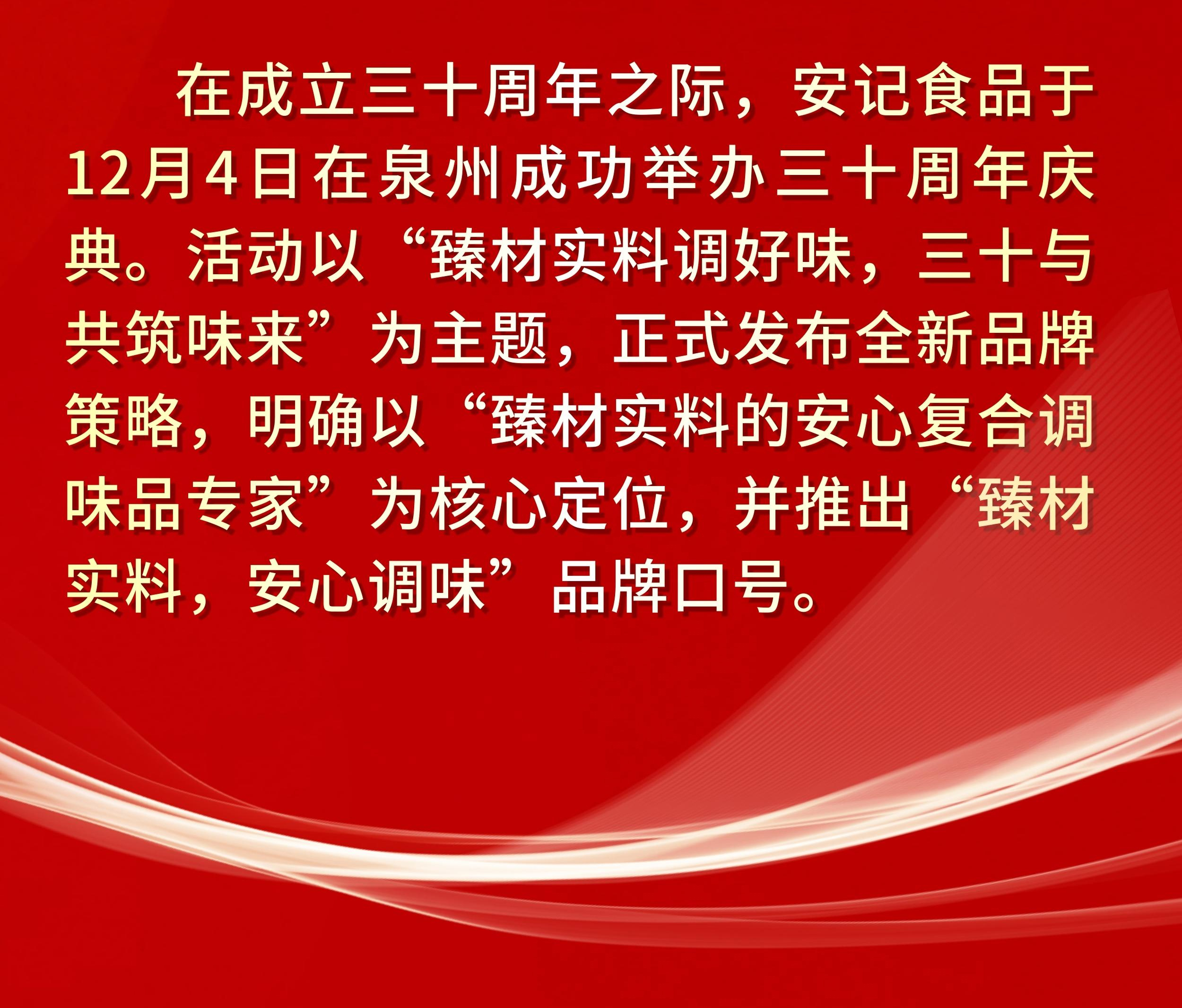 | “臻材實料調好味,三十與共筑味來”| 安記食品成立30周年暨上市十周年慶典圓滿成功 |