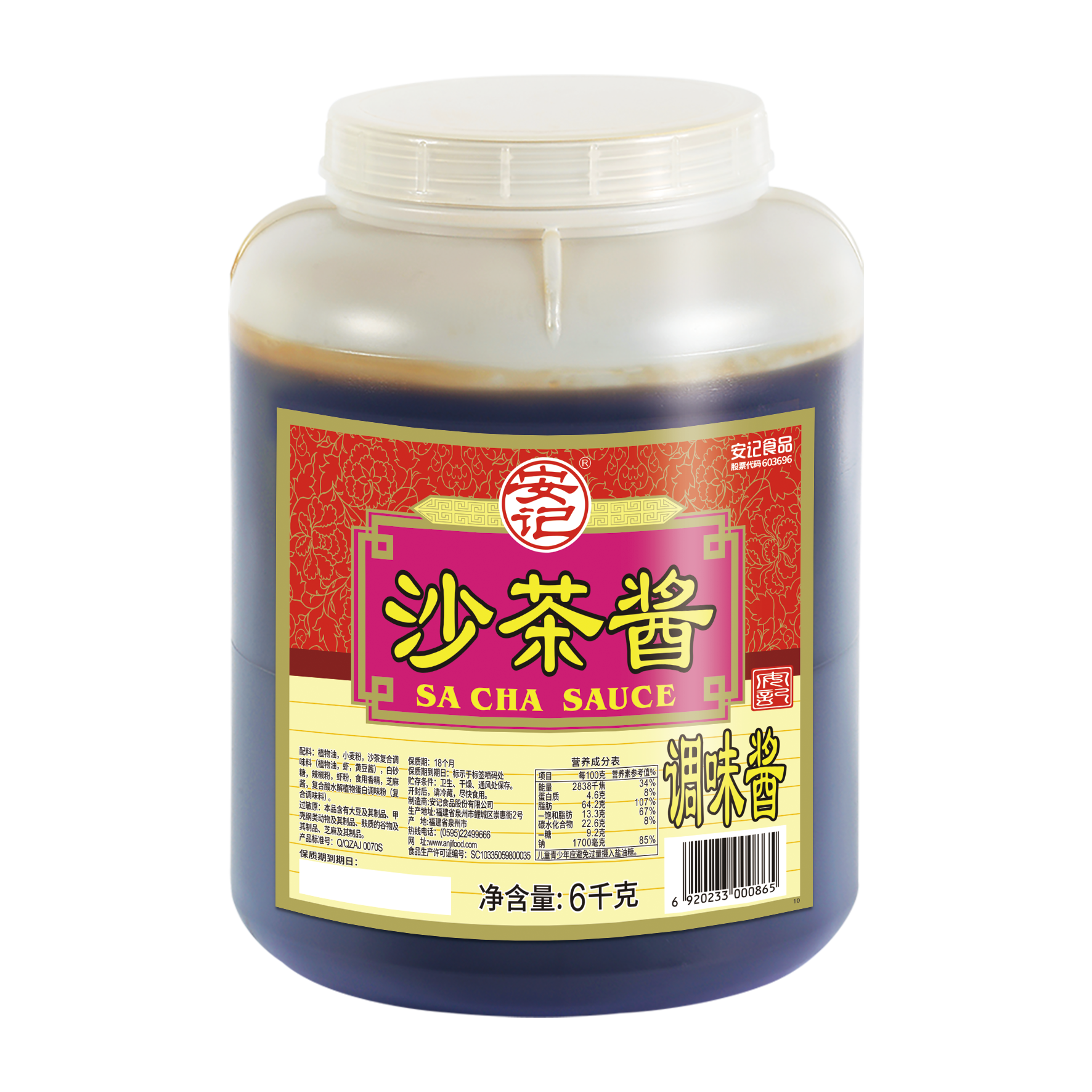 (桶裝)6000g安記沙茶醬2桶裝